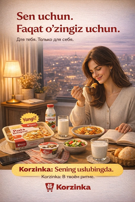 В digital-пространстве на сайте и в приложении появляется раздел “Bugun faqat o‘zingiz uchun” (Только для себя - сегодня). Там подборки под разные моменты: “ужин с сериалом”, “поужинал за 10 минут”, “одна кружка - один вечер”.