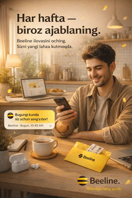 Beeline Uzbekistan стал одним из первых игроков на рынке, кто предложил формат подписки-сюрприза, встроенный прямо в мобильное приложение. Пользователь получает 4 микроподарка в месяц - от безлимита на YouTube до билета в кино или промокода на кофе.